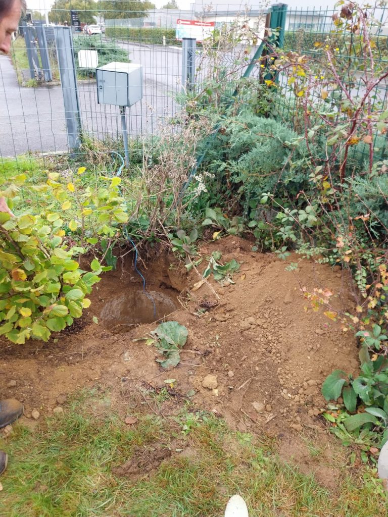 Pour cette intervention sur le secteur de DINAN dans les Cotes d’Armor, deux techniciens ont échoué pour le raccordement de la fibre pour cette entreprise. Les techniciens ne peuvent etre remis en cause sur ces échecs. En effet, l’entreprise avait un regard télécom inconnu qui avait été recouvert lors de l’élaboration d’un espace jardin par le paysagiste de l’époque. Grace à mes services, le regard a été retrouvé et mis en évidence. Un dernier contrôle entre la partie privé et le regard télécom public…….Tout est OK. Le technicien peut revenir et faire son raccordement. Réussite certaine à 100 %; Je lui ai facilité la tache en mettant en place une ficelle bleue qui servira d’aiguille entre les chambres.