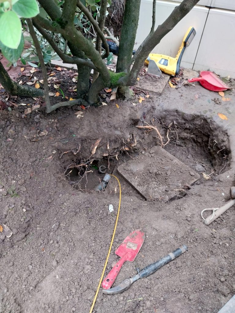 Ne pas sous évaluer la position parfois profonde du citerneau contenant les raccordements Télécom de votre habitation. Ici, à Melesse, au nord de Rennes en Ille et Vilaine, détection du regard Télécom à 1,2 m de profondeur. Il ne faut pas de se décourager pour trouver son regard….ne pas hésiter à utiliser une mini pelle.