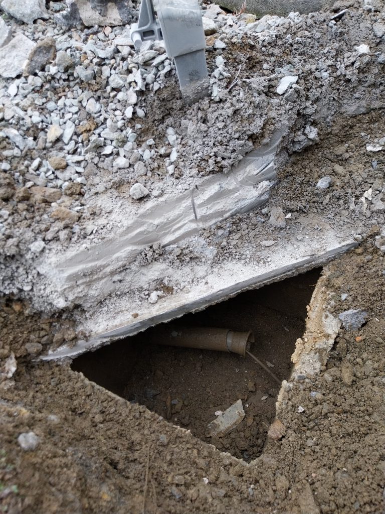 Dans ce cas précis, le regard avait été recouvert de béton lors de la mise en place du portail et des loquets de blocage.