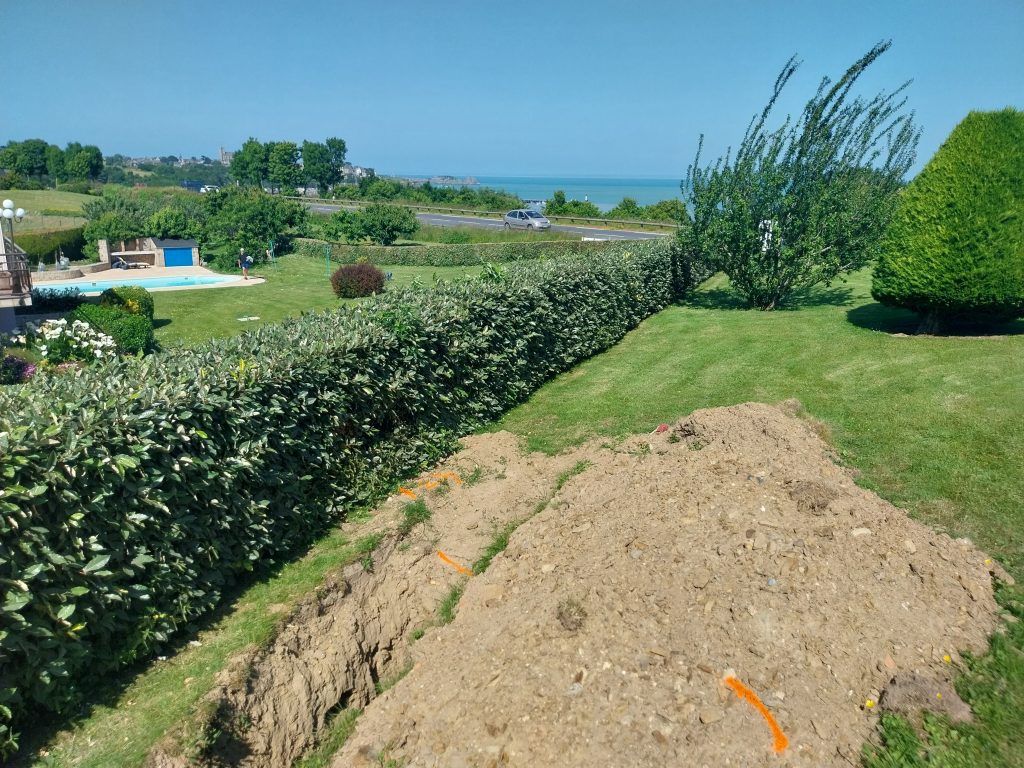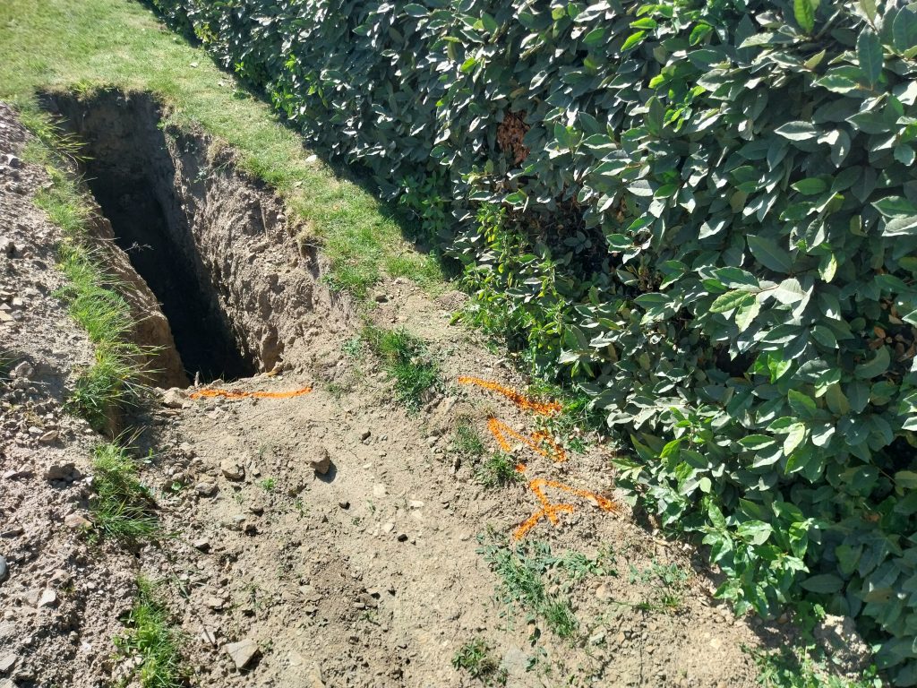 Afin de satisfaire aux exigences normatives, mon client a commencé à chercher seul la localisation de son réseau. Malgré un trou de 1,80 m de profondeur sur 3 m long et 1 m de large, mon client n’a pas trouvé.